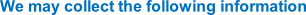 We require this information to understand your needs and provide you with a better service, and in particular for the following reasons: